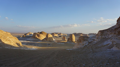 A fantastic gleaming landscape in western Egypt, located stretches over 300 sq.km west of the Farafra Oasis between the Nile Delta Valley and the Libyan border.